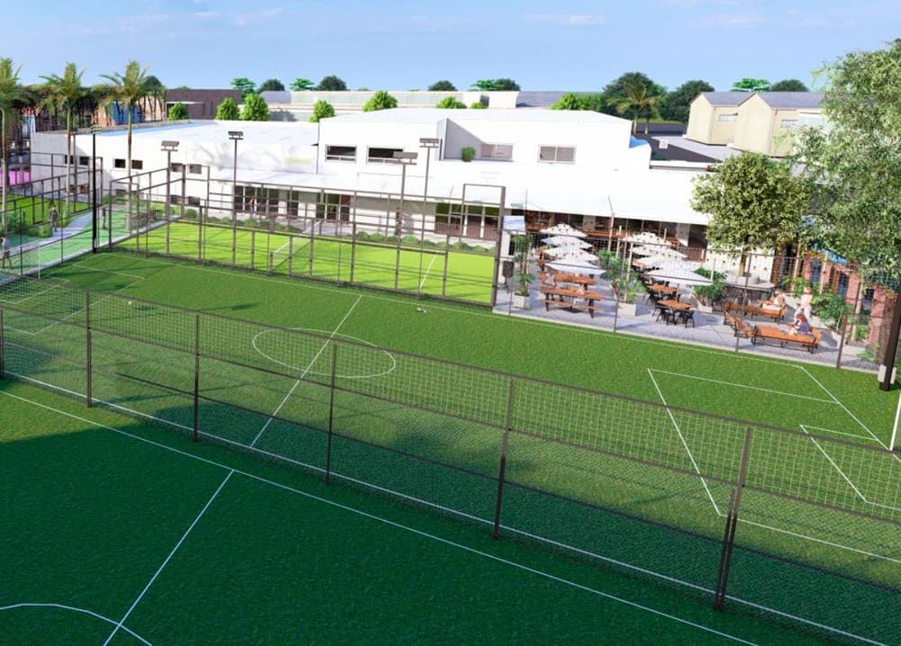 The project is currently in its final stage of development and will soon open as an integrated venue combining professional soccer fields, padel courts, sports bar areas, private event spaces, and community-driven experiences designed to bring people together through sport